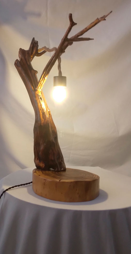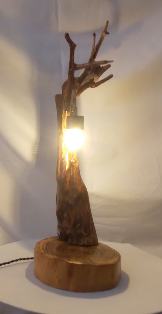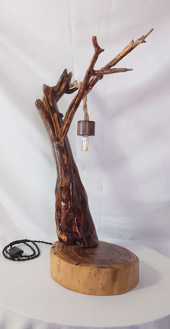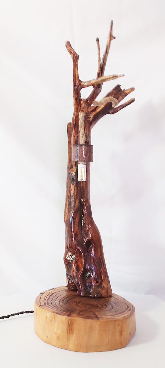 Miré el palo y me pareció ve lo mismo que debía haber visto el señor Knuckles: la cara de un personaje. Así que pensé que quedaría bien con un candil que lo iluminase. Y aquí está, espero que os guste.