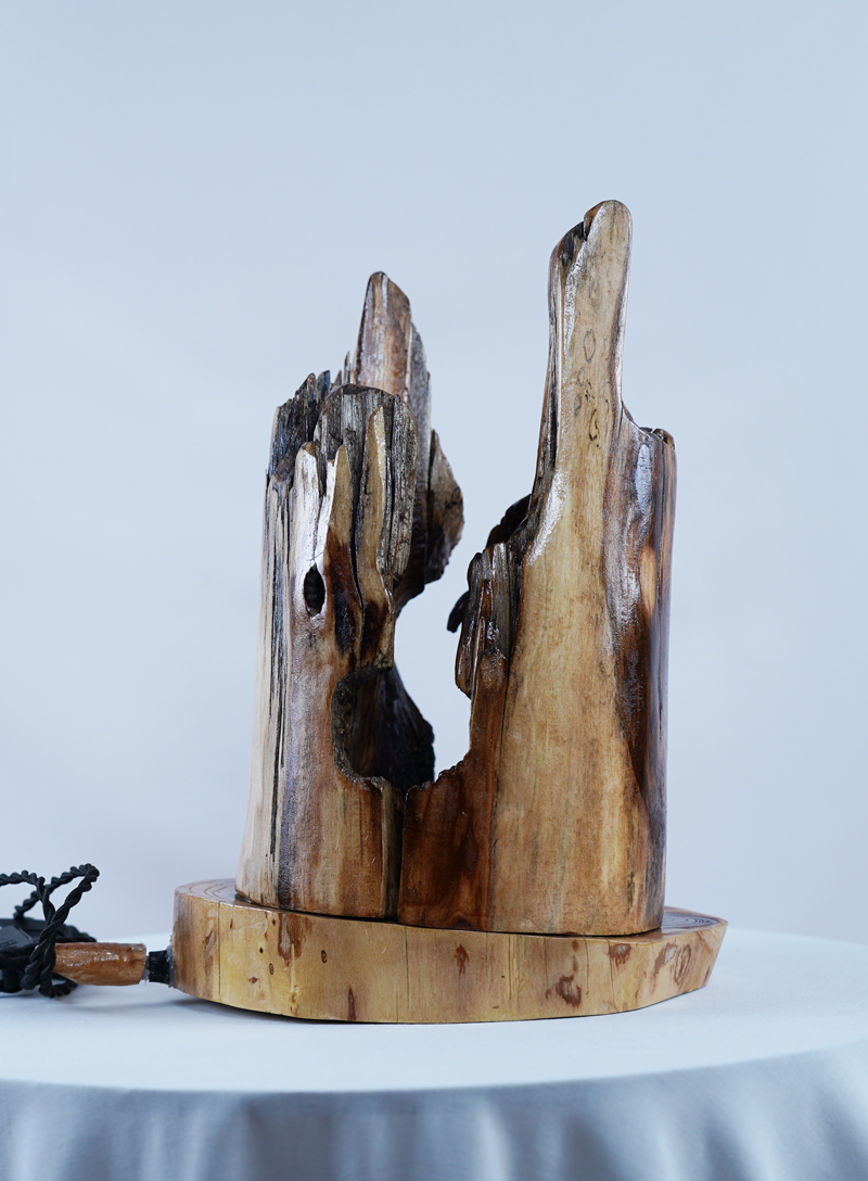 Cerca de allí encontramos una cueva vacía donde paramos a descansar un rato; en el fondo había una montaña de medio metro de palos, astillas y recortes de madera. Entre todos ellos destacaba uno que casi parecía resplandecer. Cuando lo observé con detenimiento, vi que era un pequeño trozo de tejo. El árbol del tejo es un árbol legendario, motivo de muchas leyendas y peligroso para los incautos cuando está vivo. El tronco estaba casi partido por la mitad; en uno de los lados tenía un agujero hecho por un pájaro carpintero y en el otro un nudo natural.