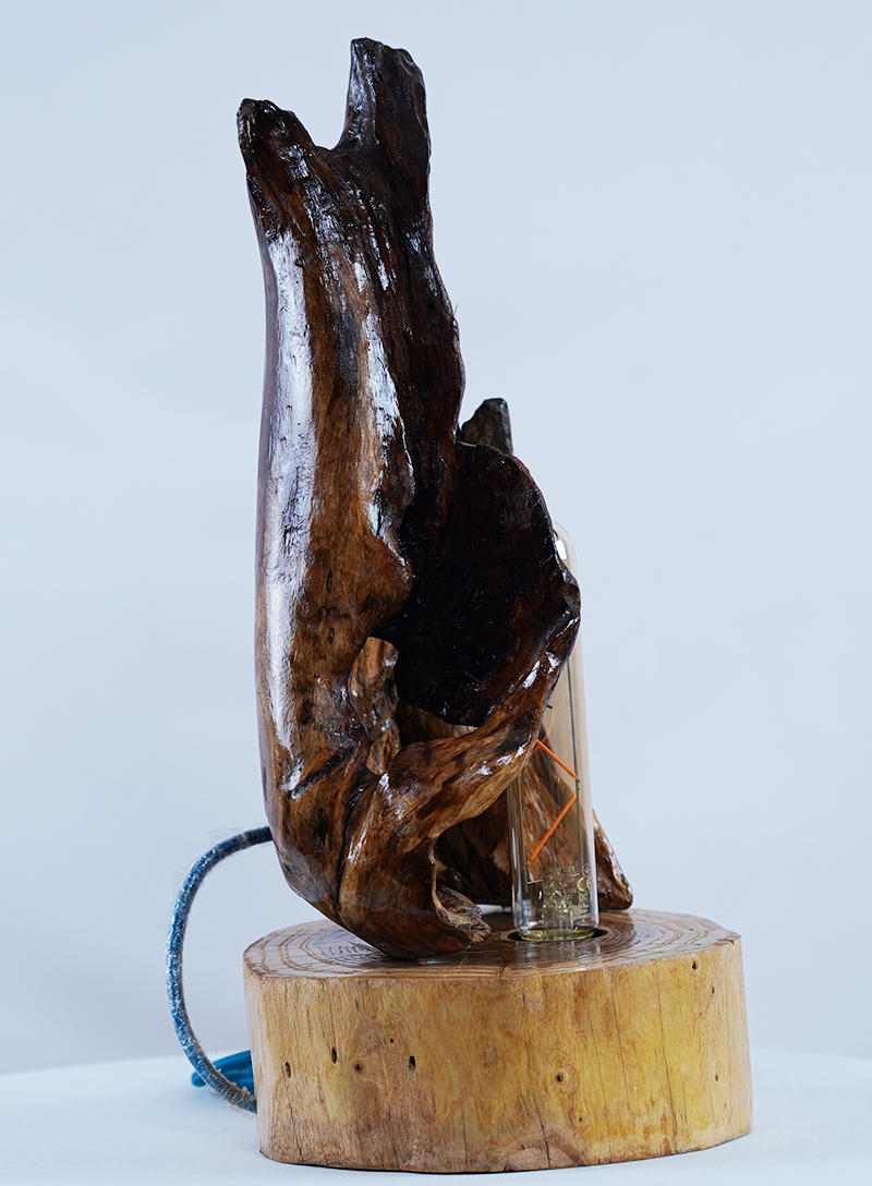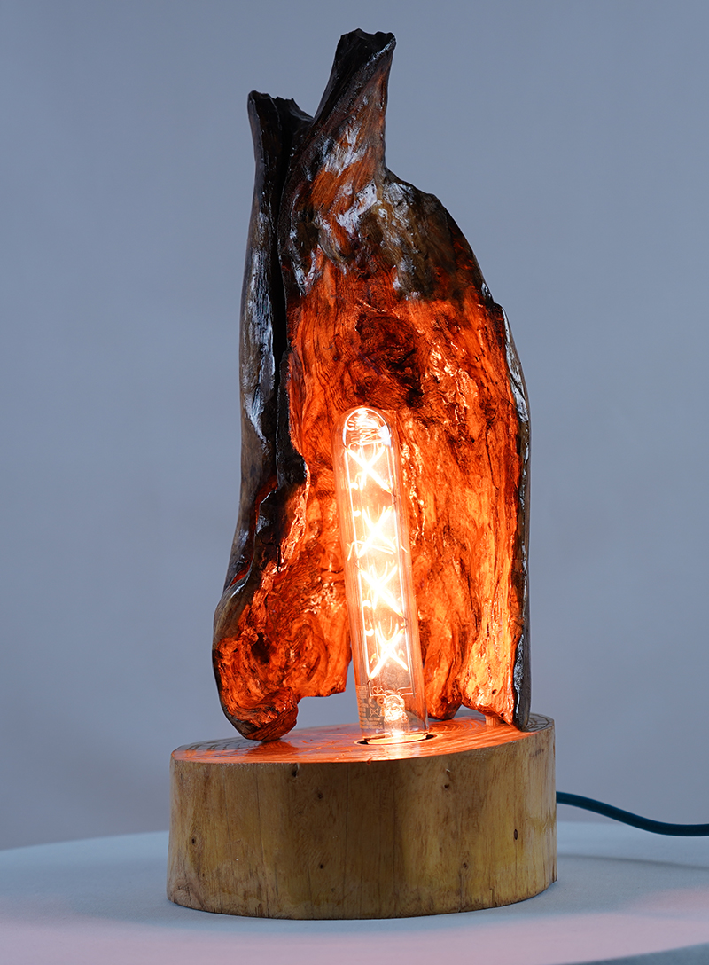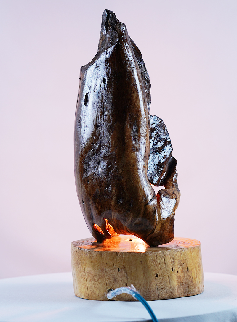 Así que me acerqué, lo saqué de entre la nieve y me lo llevé a casa, entre un buen hatillo de leña. Al llegar a casa, desde el bosque nevado y silencioso, portaba ese trozo de madera conmigo. Avivé las brasas, eché unos troncos al hogar y el fuego se levantó. Entonces lo pude ver bien: era una pieza de olmo maravillosa que parecía una caverna... No pude esperar y en ese mismo momento comencé a limpiarla ¡y aquí está!