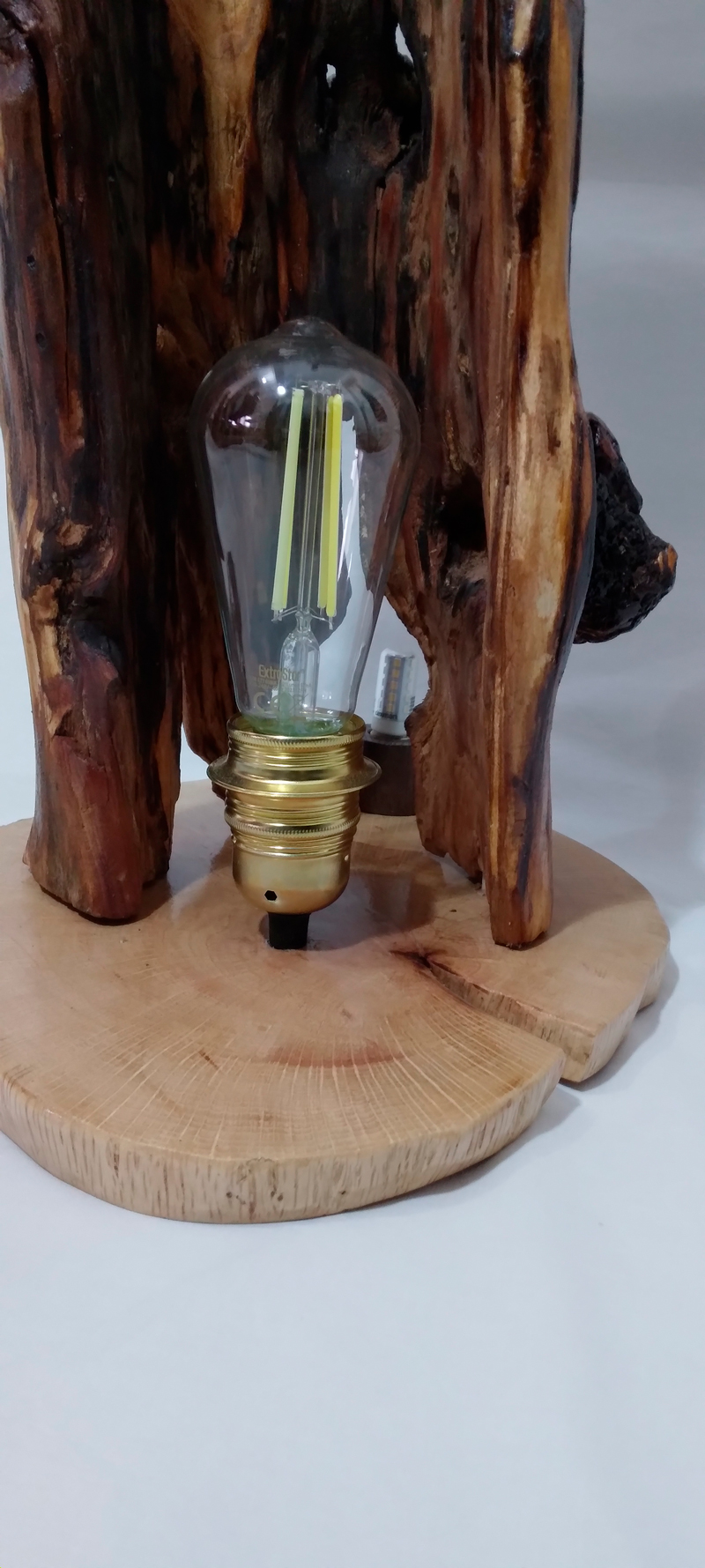 La misma mañana que encontramos a La luz del tiempo, encontramos también este otro trozo de espino. Debía ser familia, ya que estaba a su lado. Pude sacarlo también y este parecía tener manos. Siendo de la misma familia, no podía tener otro nombre que Las manos del tiempo, un nombre precioso para una lámpara espectacular de madera de espino albar. Espero que os guste.