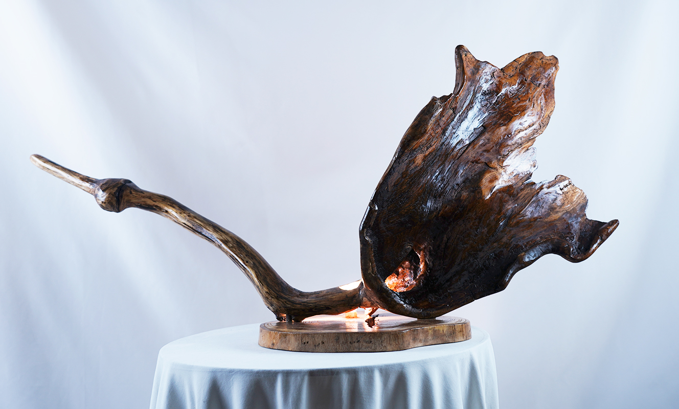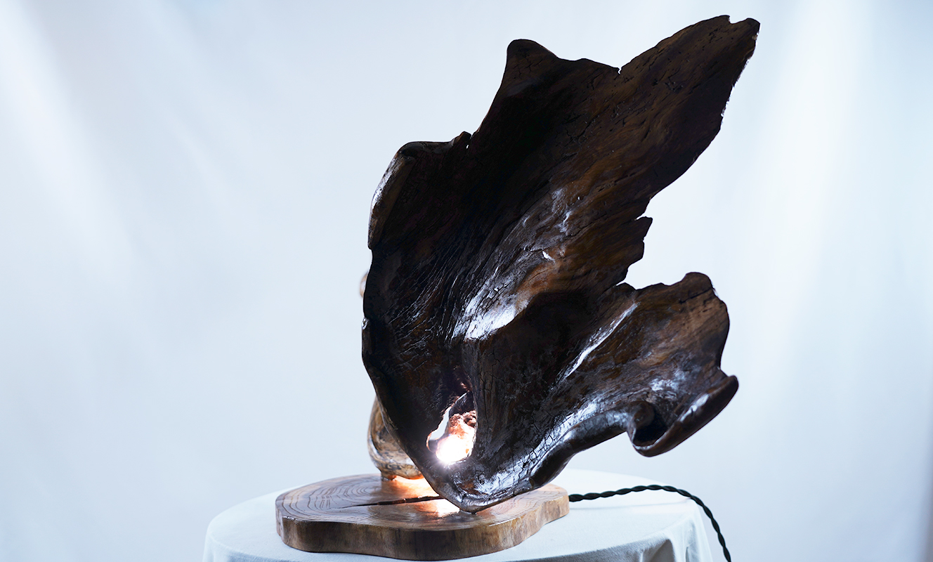 Ormal es otra de esas piezas que he buscado durante mucho tiempo, para homenajear aquellas primeras lámparas de la maravillosa obra de Tolkien, una preciosa pieza de Olmo que simula la hoja-broche de las capas de los elfos.